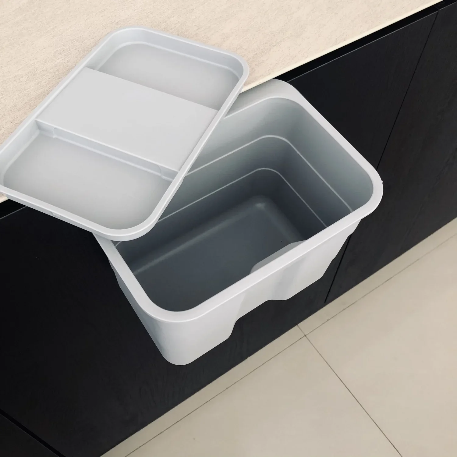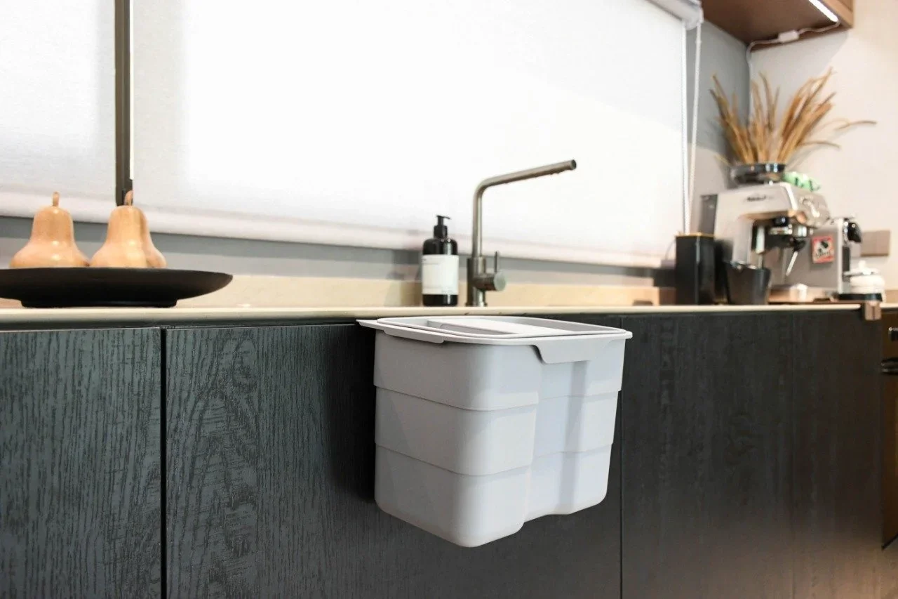 This counter bin comes in handy when I chop and peel veggies. Just slide everything in and you’ve got a clean counter!