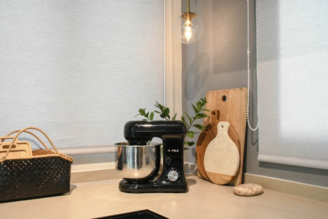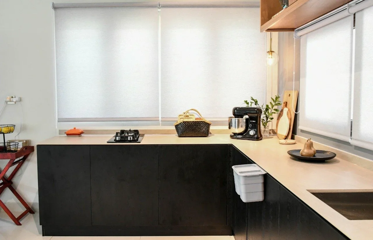 The view outside the kitchen was the laundry area, hence not exaclty a pretty sight. So we asked our good friend from Lentz Interiors to give us options on window treatments. from Sharp Point. They basically did all the curtains and blinds for our home and we couldn’t be happier with the quality!