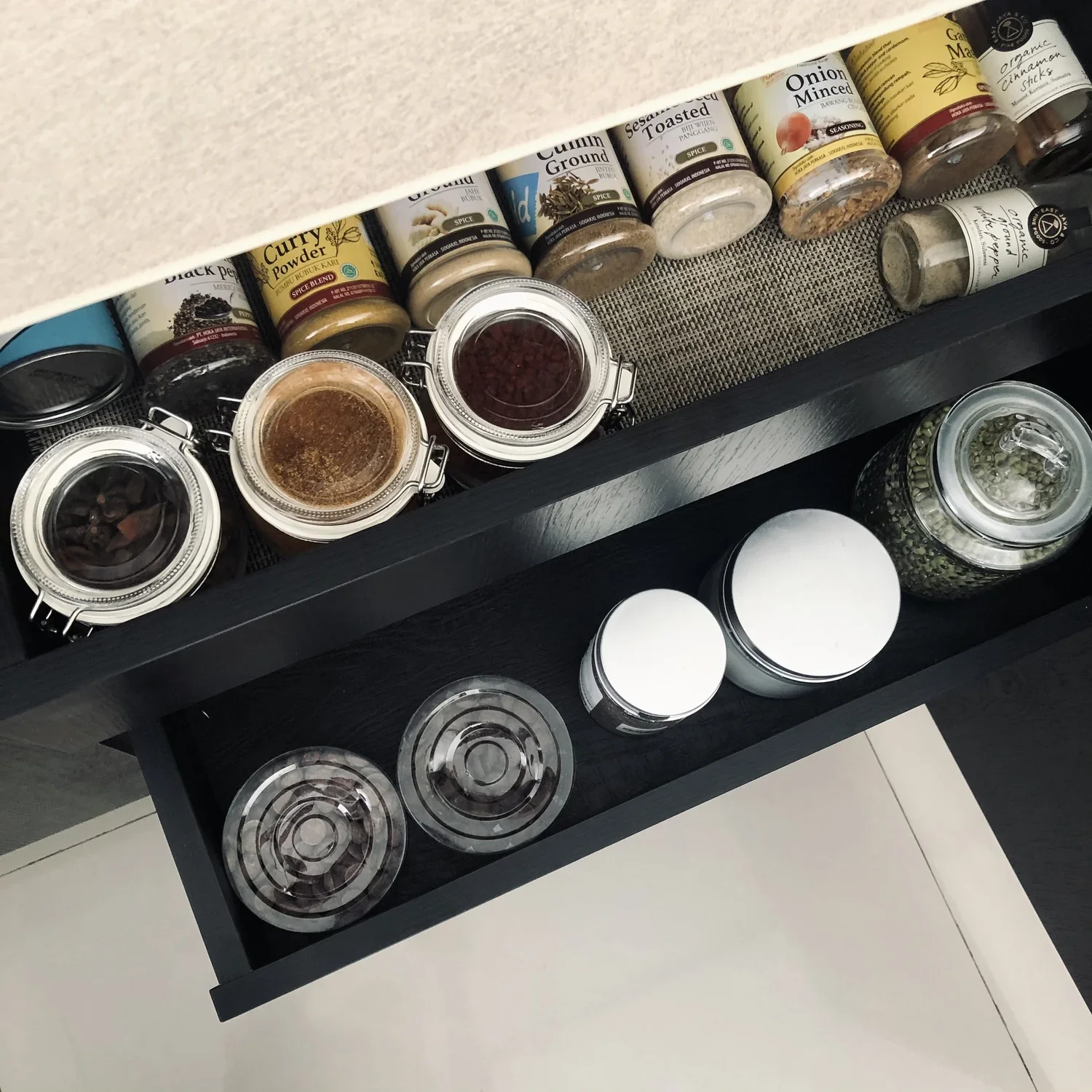 My spice drawers hiding everything neatly.
